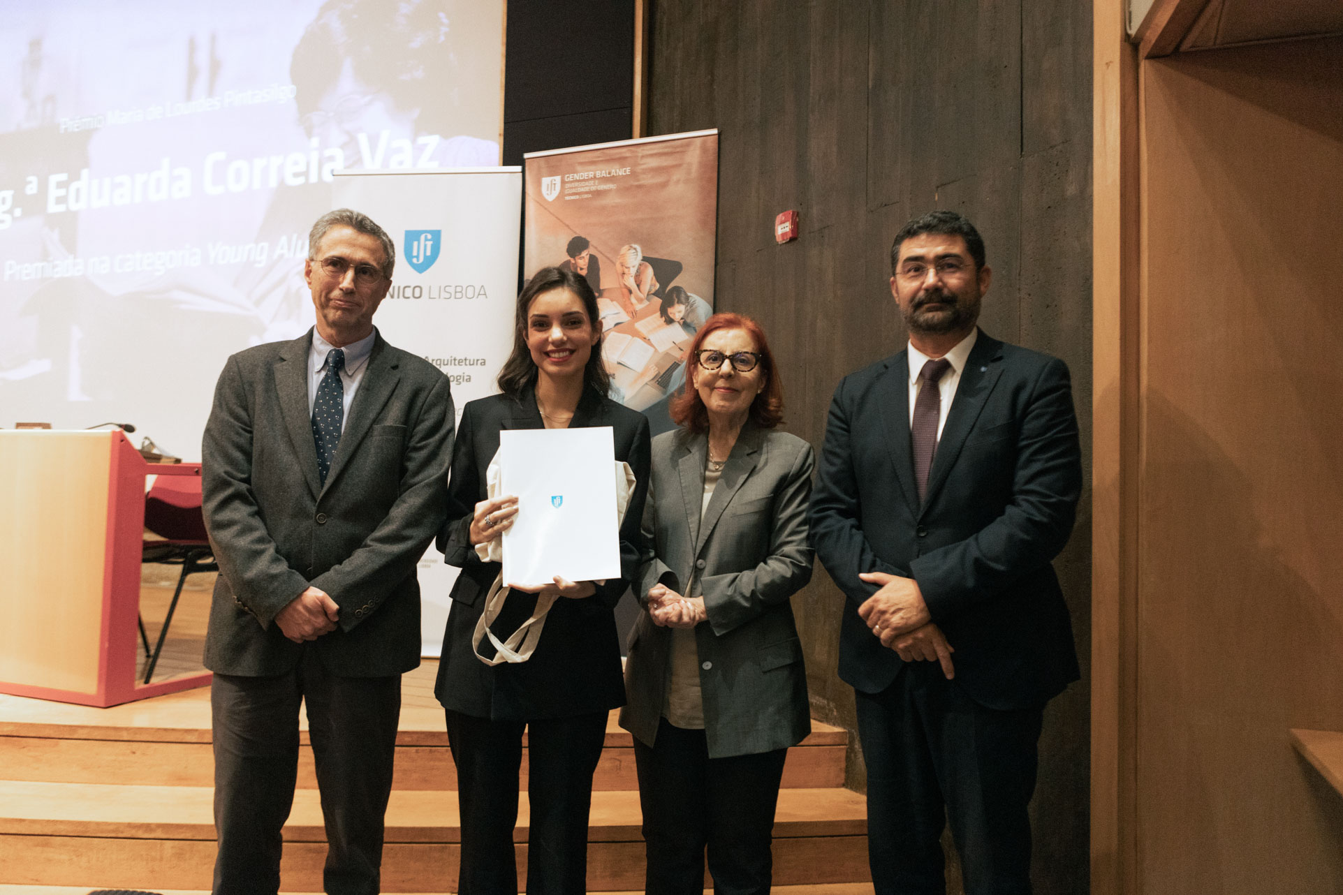No passado dia 26 de novembro, realizou-se, no Centro de Congressos do Instituto Superior Técnico, pelas 17 horas, a cerimónia de entrega do Prémio Maria de Lourdes Pintassilgo a Sofia Canteiro Aparício e a Eduarda Correia Vaz, na categoria Young Alumna, e a Carla Pepe Lewark, na categoria Role Model. Foi também possível assistir através da transmissão no Youtube.