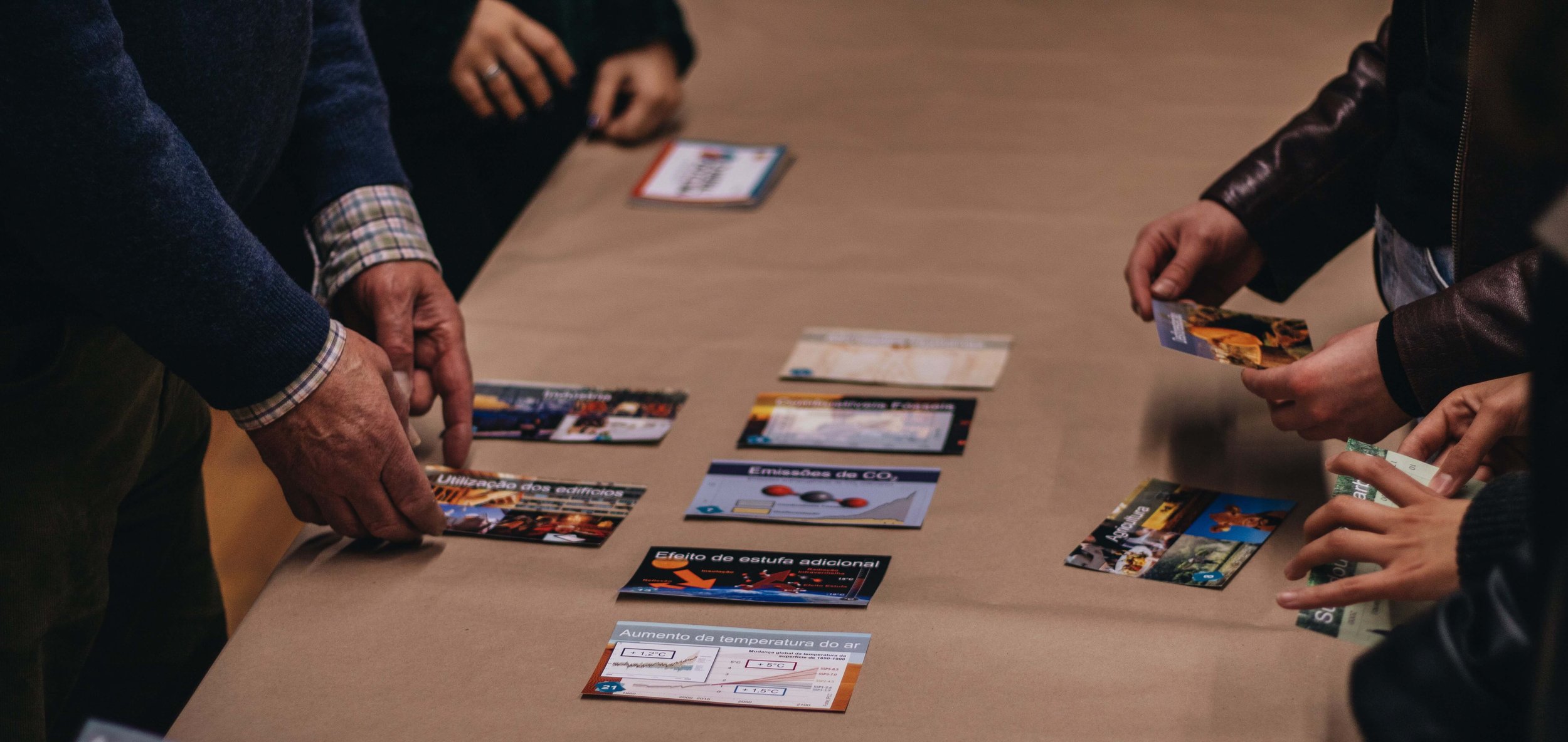 Na primeira, de reflexão e ligação das cartas, um grupo de jogadores colabora para encontrar as relações de causa efeito entre 42 cartas, criando um “fresko” ou mural, ao longo de 90 minutos.