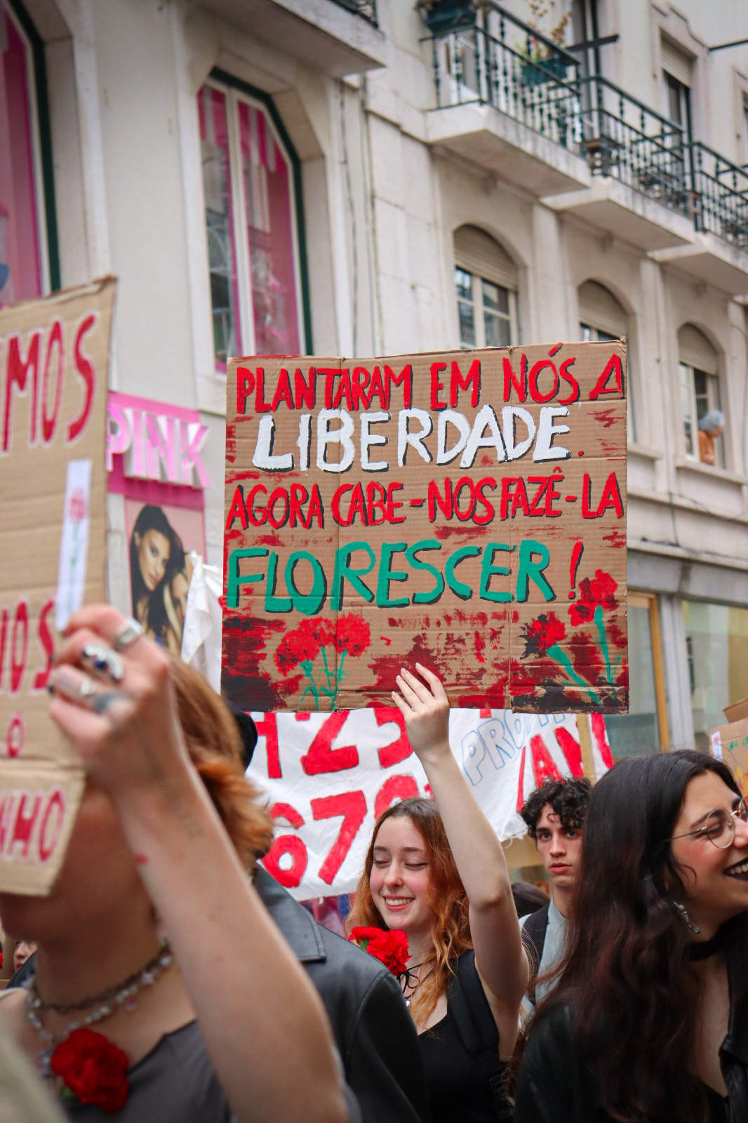 Após um atraso de trinta minutos, a marcha partiu lentamente. As paragens foram frequentes e prolongadas devido ao itinerário, que obrigava a cortes no trânsito local. Os estudantes subiram até ao Chiado: do elevador de Santa Justa pendia uma tarja onde se lia “Abril é o futuro” e estudantes atiravam cravos.
