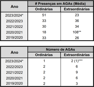 * De momento, só foram contadas a única AGA ordinária e as 2 AGA extraordinárias do mandato presente