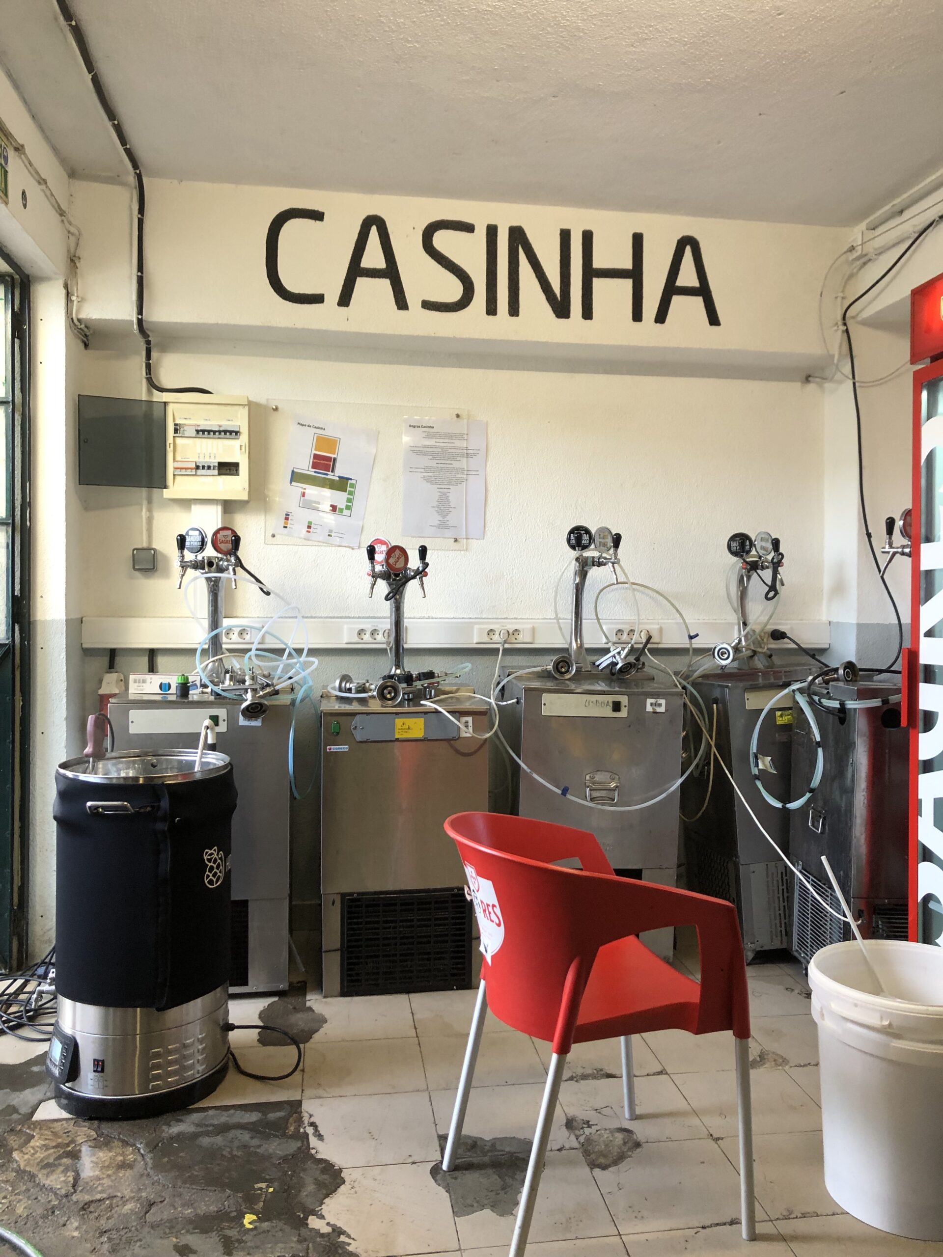 garrafas com cerveja antiga que serão reutilizadas. O caminho até lá chegar é longo. “É aqui que fica tudo guardado”, diz o Presidente. O espaço é uma espécie de escritório sem porta. À entrada estão afixadas fotos das pessoas que fizeram parte da coordenação nos anos anteriores. Entre garrafas de cerveja e arcas de refrigeração, ficam guardados os materiais que fazem funcionar o clube. “Se tivéssemos outro espaço facilitava a produção”, partilha André. Ao canto há fermentadores com diferentes cervejas de outras produções. André faz as contas: “Temos 60 litros, mas hoje vêm mais 40, por isso na totalidade serão 100”.