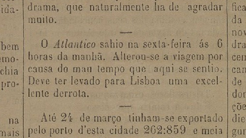 Notícia sobre alteração da viagem do vapor Atlantico “por causa do mau tempo”. [5]
